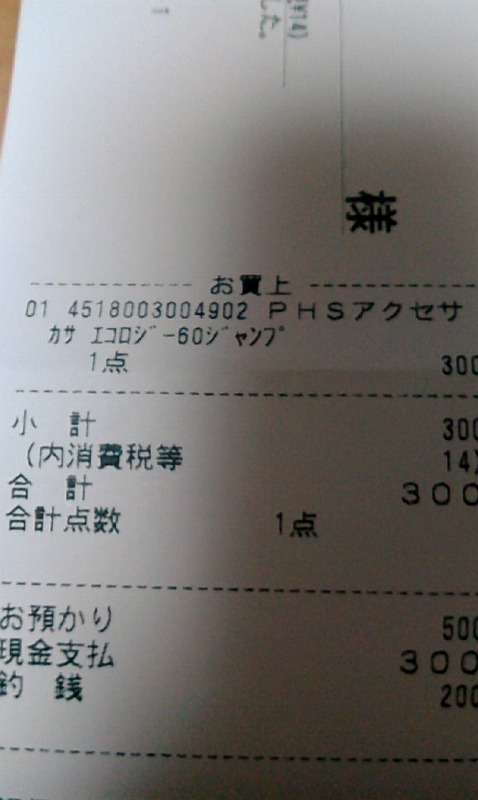 で、レシートを見ると、PHSアクセサリーという商品区分になっているぽい。